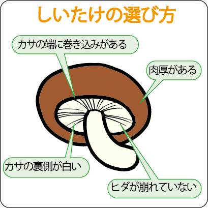 カサの裏が白くヒダが綺麗なもの、カサの端が内側に巻き込んでいる肉厚なものが鮮度抜群で美味しいサインです。